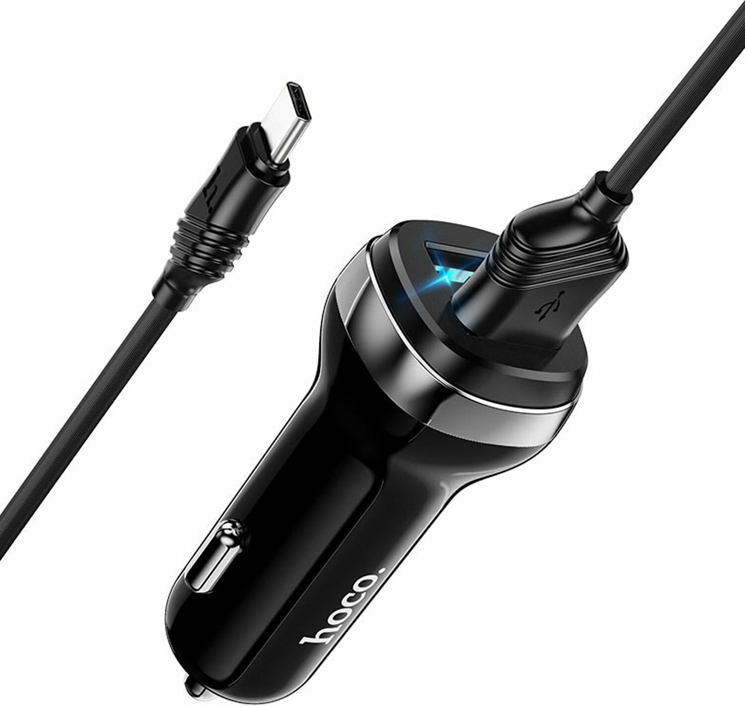 Автомобильная зарядка HOCO Z40 Superior, 2*USB + Кабель USB-Type-C, 2.4A, черный