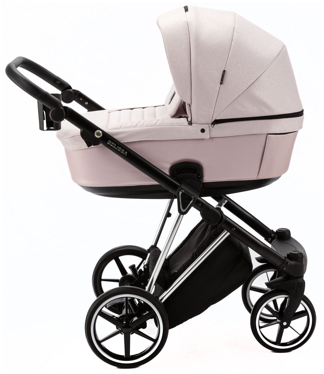 Купить Коляска универсальная Adamex Belissa Special Edition 2 в 1, PS-590 - светло-розовая с блестками, светло-розовая перламутр кожа, хром рама