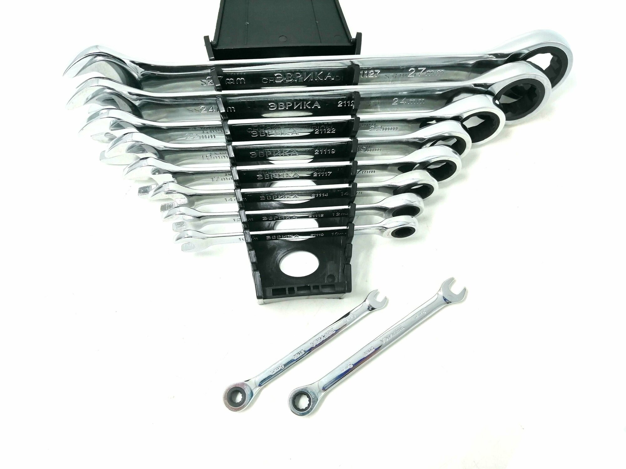 Набор ключей комбинированных 6-27мм трещоточных 10 предметов в холдере эврика ER-20627