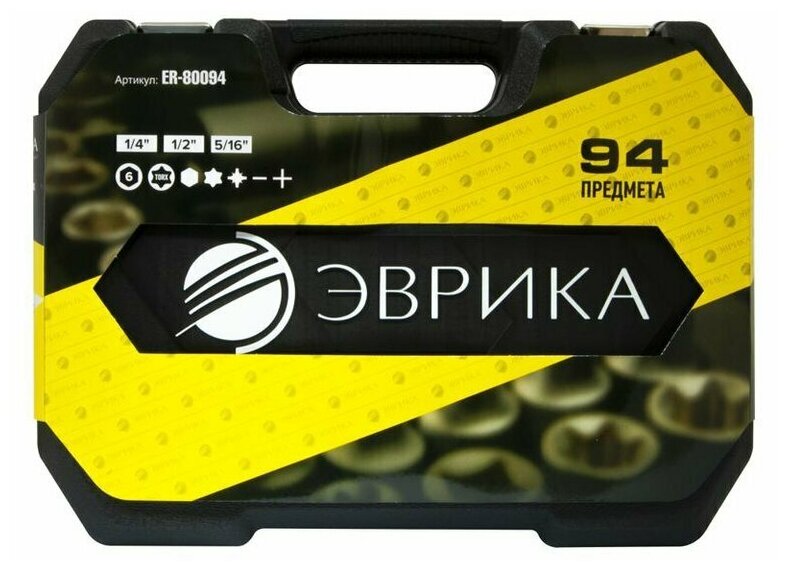 Набор торцевых головок Эврика ER-80094 1/4", 1/2"DR, 94 предмета