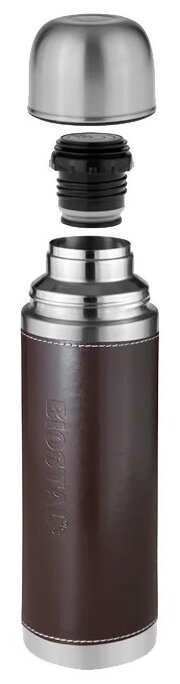 Термос BIOSTAL 750NYP-P коричневый с узкой горловиной с кожанной вставкой, 2 пробки объем 0,75л