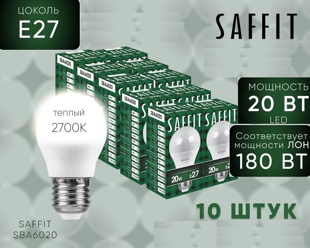 Лампа светодиодная SAFFIT SBA6020 Шар E27 20W 2700K, 55013