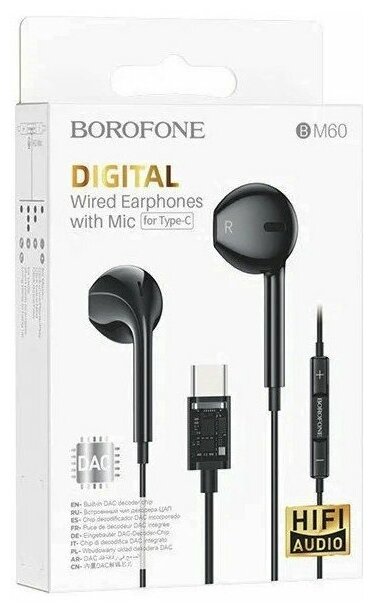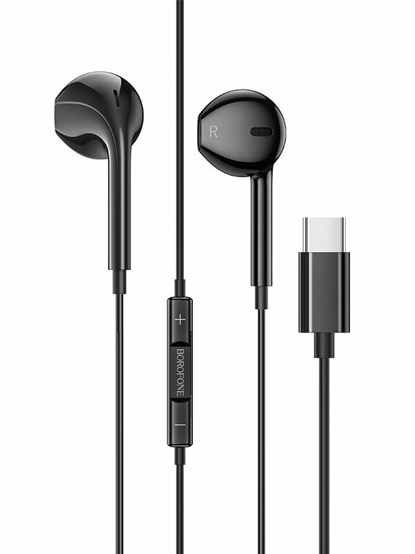 Наушники внутриканальные Borofone BM60, Original series, микрофон, кнопка ответа, регулятор громкости, кабель Type-C, цвет: черный