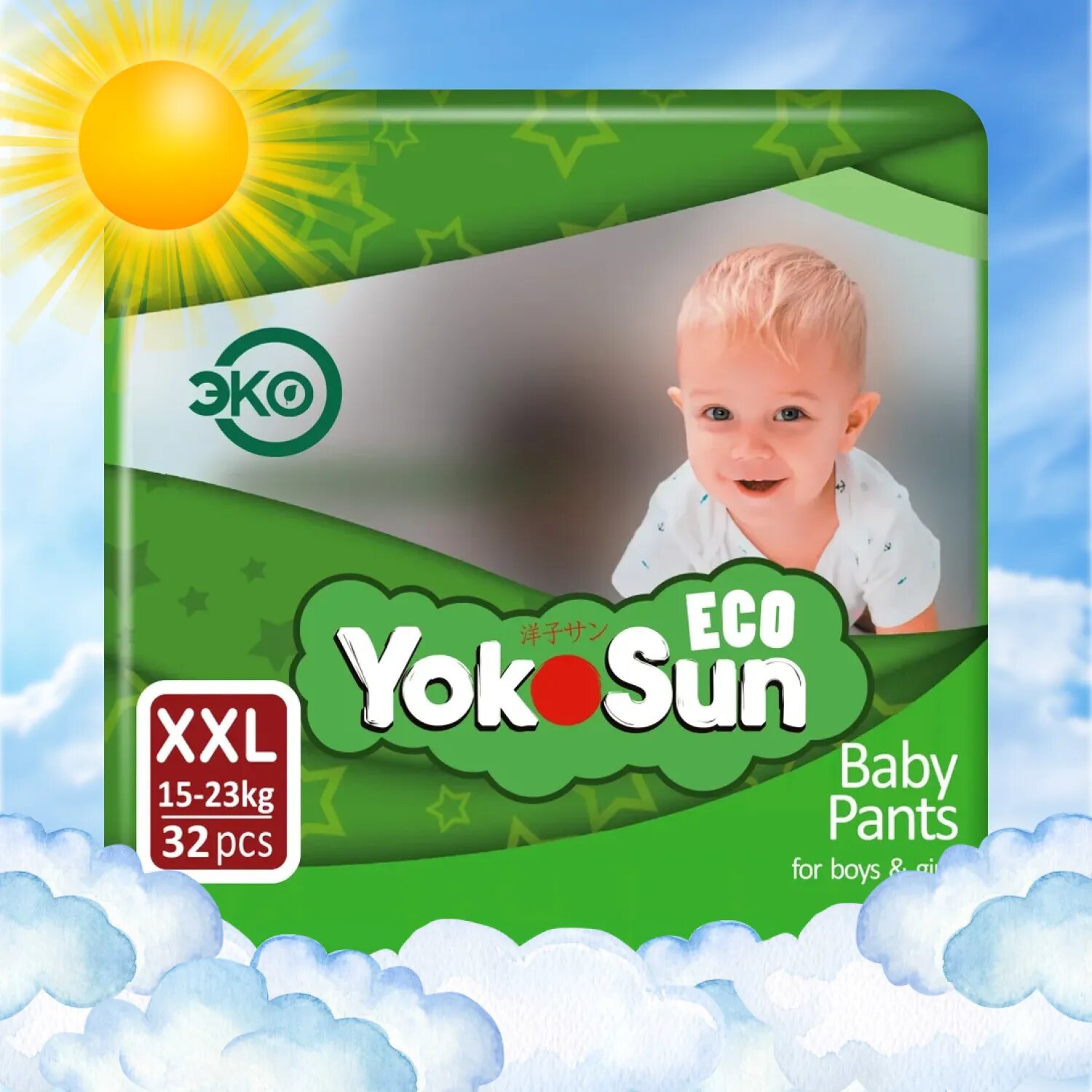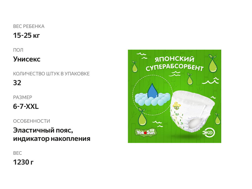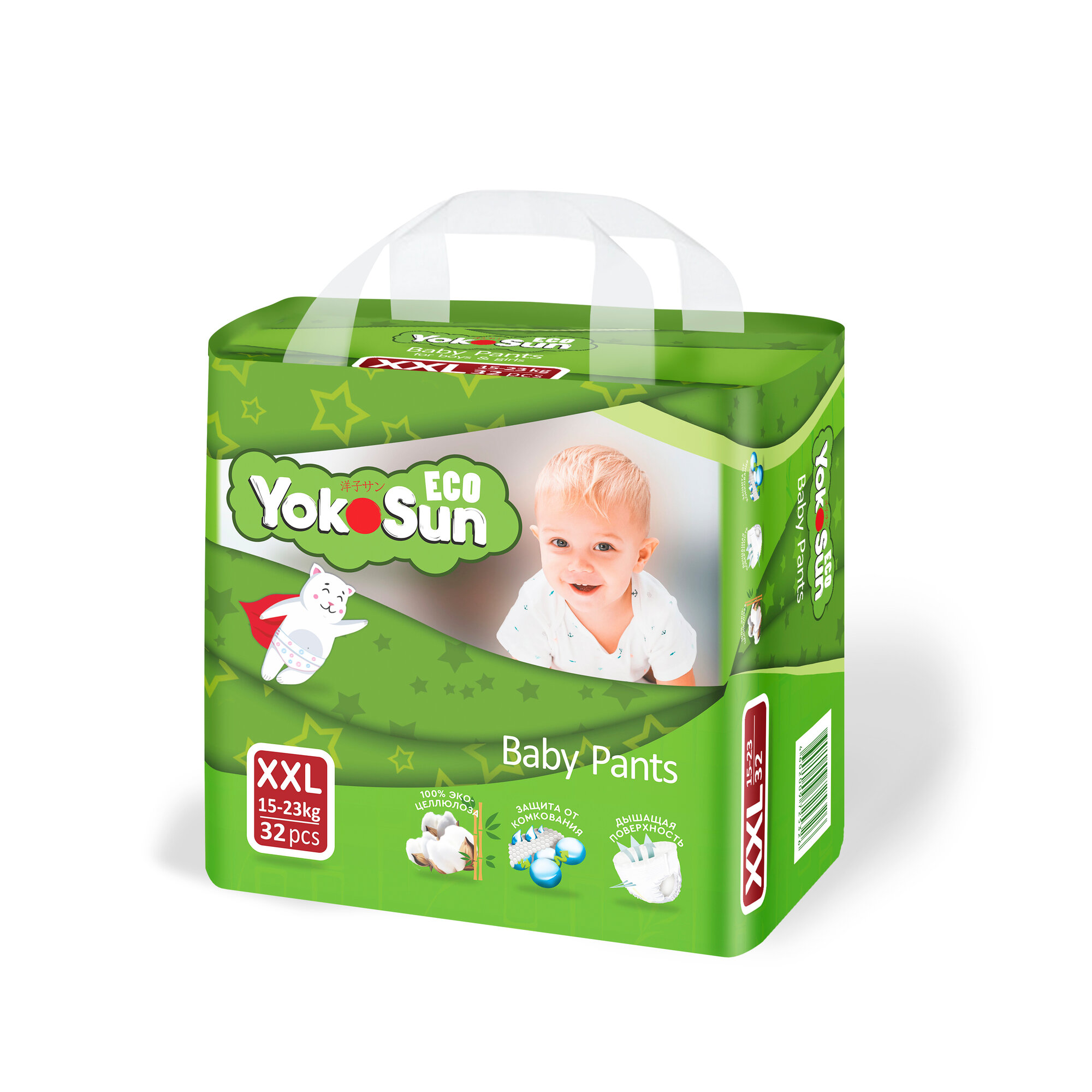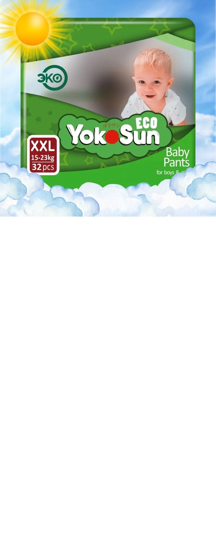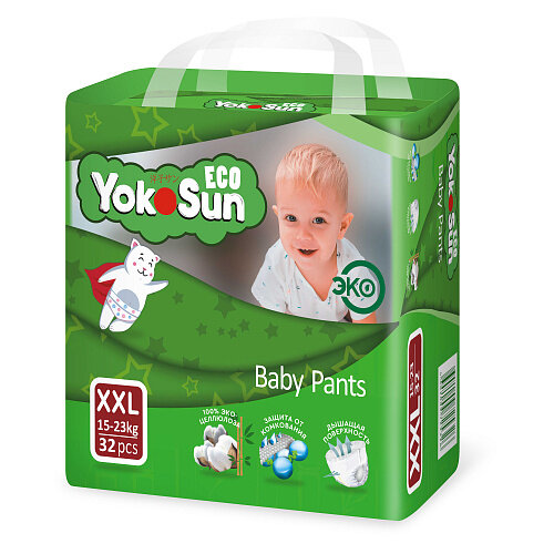Детские подгузники-трусики YokoSun Eco размер XXL (15-23 кг), 32 шт.