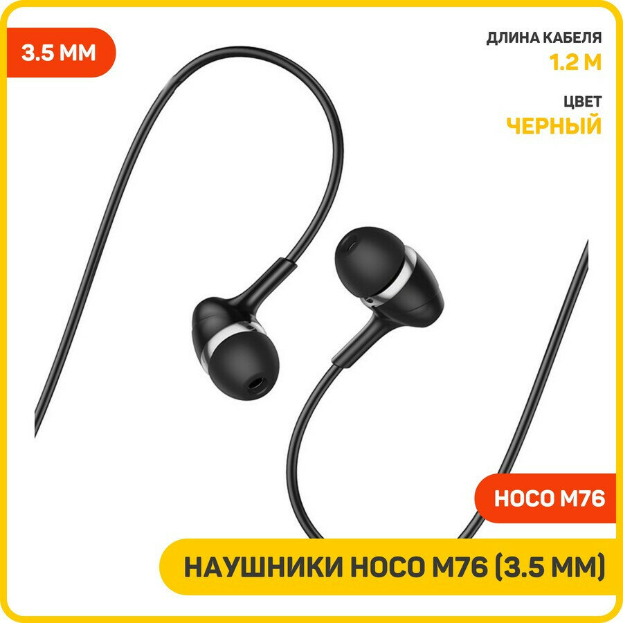 Купить Наушники Hoco M76, проводные, вакуумные, микрофон, Jack 3.5 мм, 1.2 м, черные