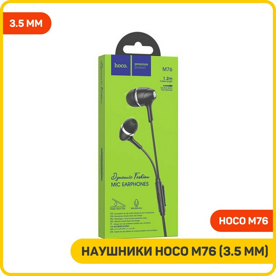 Наушники Hoco M76, проводные, вакуумные, микрофон, Jack 3.5 мм, 1.2 м, черные, цвет чёрный