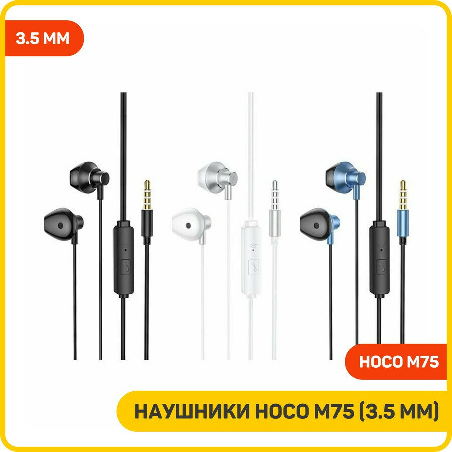 Hoco Наушники Hoco M75, проводные, вкладыши, микрофон, Jack 3.5 мм, 1.2 м, черные