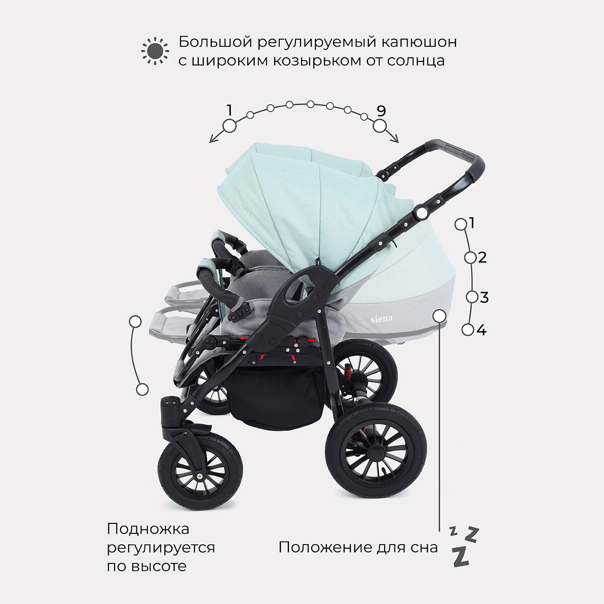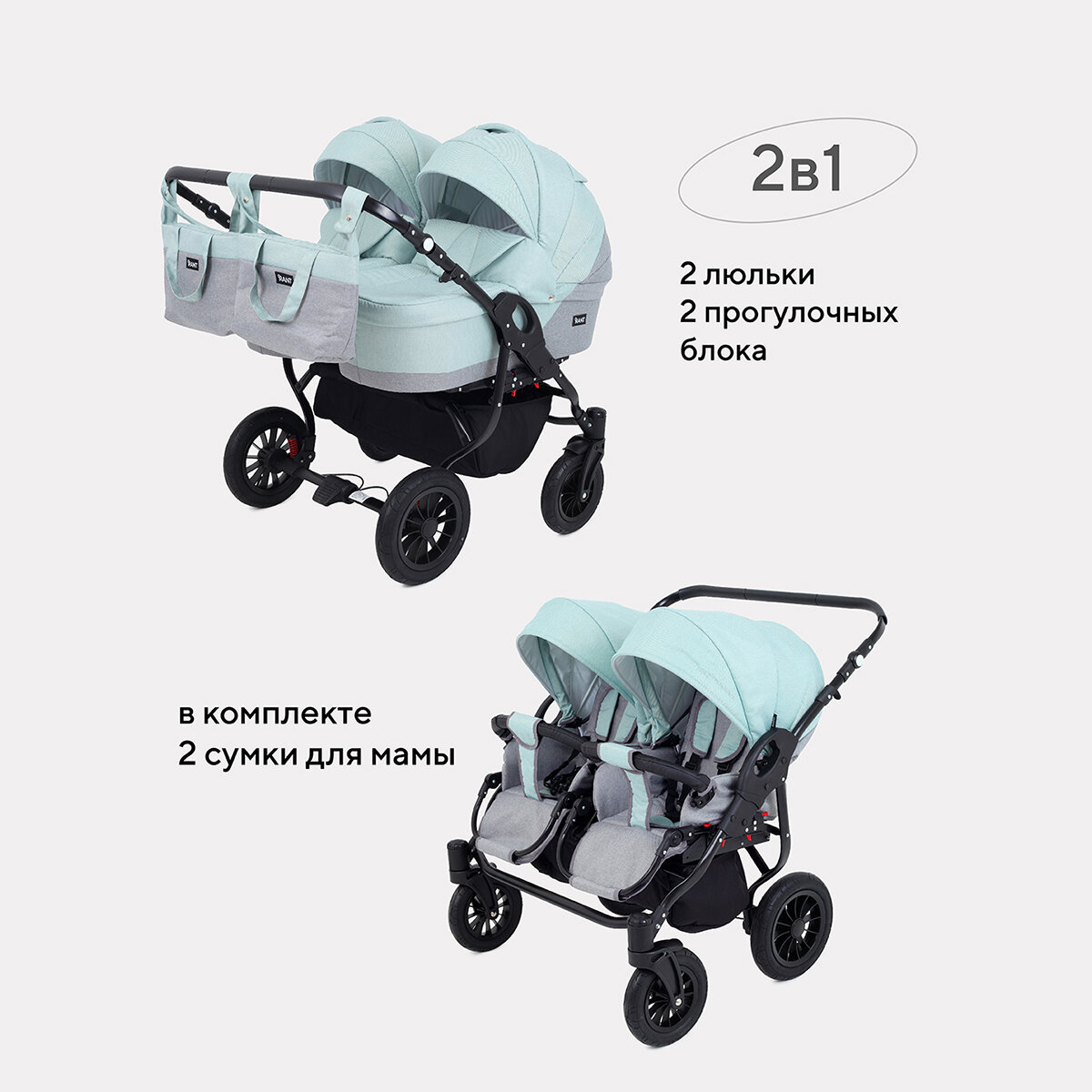 Коляска SIENA DUO (RANT) 08 серый-ментоловый интересное: