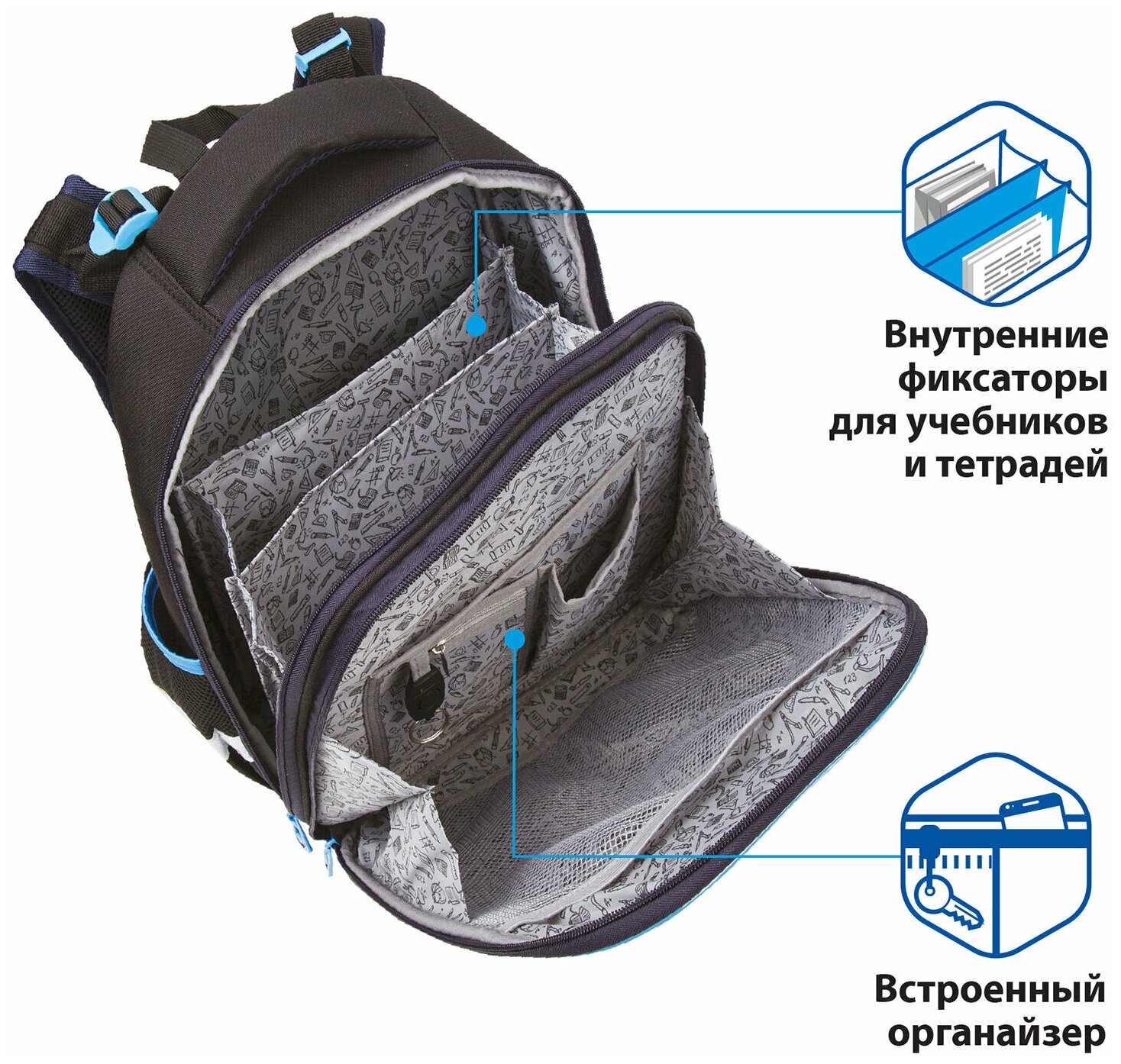 BRAUBERG Ранец Cyborg (229910), черный/серый/голубой