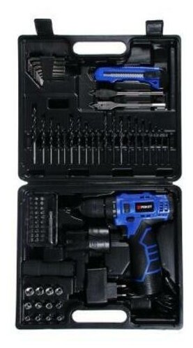 | Дополнительная информация | дрель шуруповерт, дополнительный аккумулятор, зарядное устройство, переходник для бит, перовые сверла - 2 шт., сверла по бетону - 10 шт., сверла по металлу - 10 шт. |