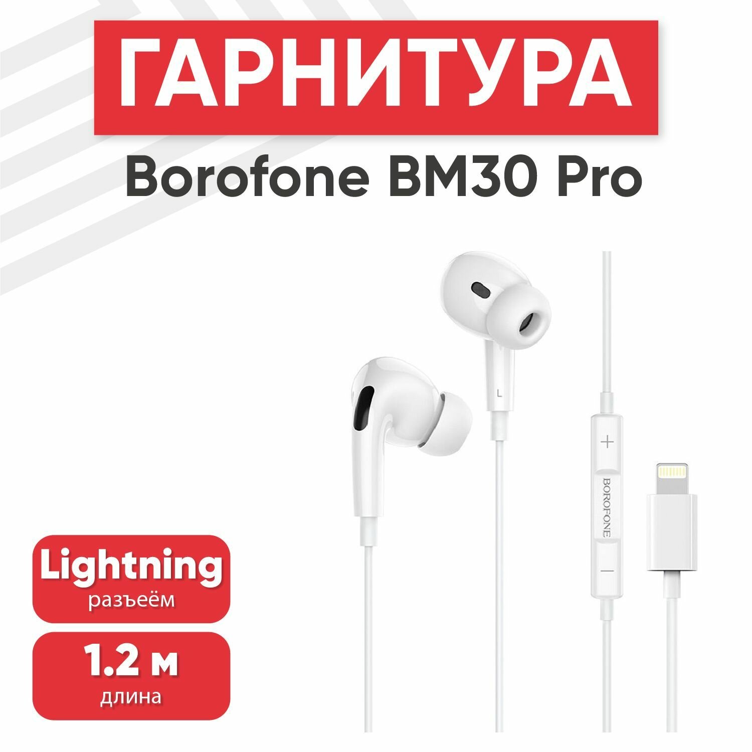 Купить Borofone Наушники Borofone BM30 Pro, вакуумные, микрофон, Lightning, кабель 1.2 м, белые