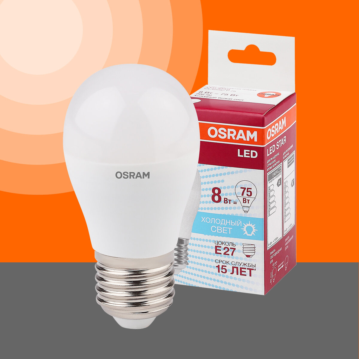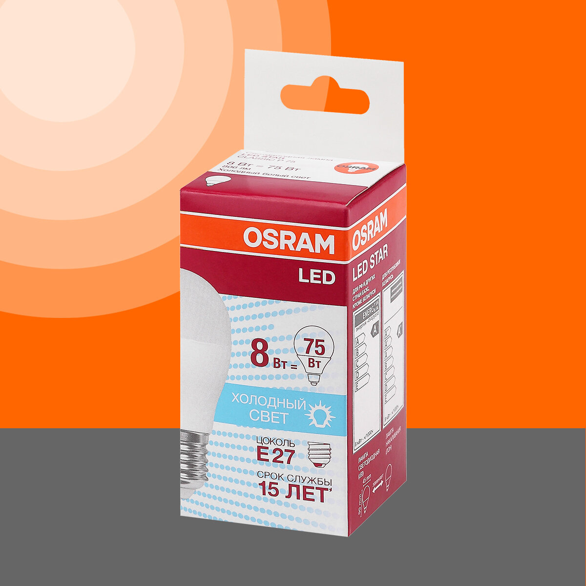 Лампа светодиодная LED STAR CLASSIC P 75 8W/840 8Вт шар 4000К нейтр. бел. E27 806лм 220-240В матов. пласт. OSRAM 4058075210899 ( 1шт. )