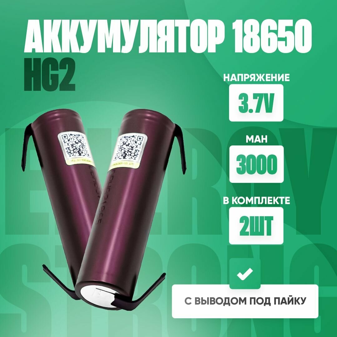 Аккумулятор 18650 LiitoKala HG2 Li-ion 3.7В 3000mAh без защиты с выводами для шуруповёртов, пылесосов, вейпов и т.д. 2 шт.