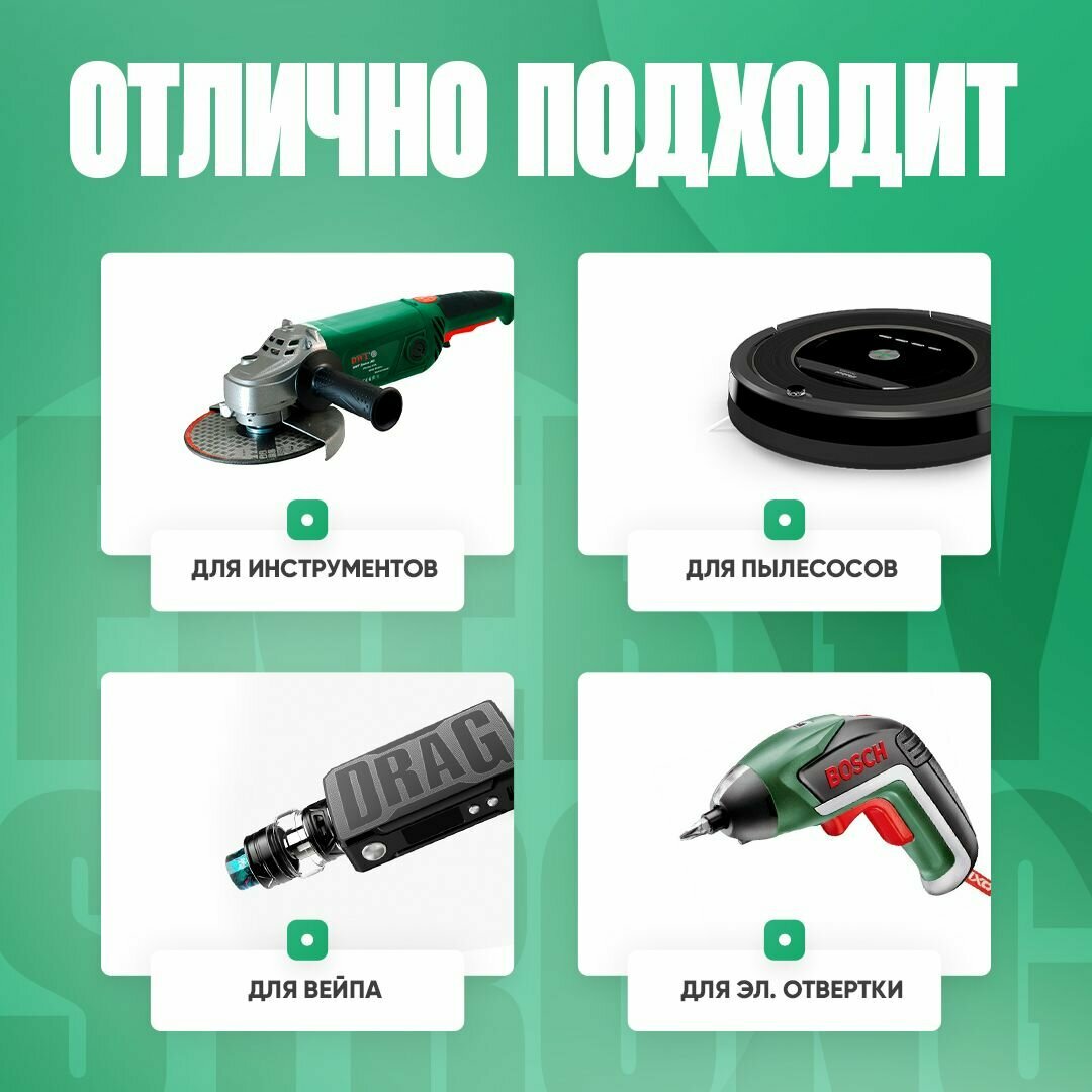 | Отзыв: | Подойдут для фонарей, маломощных до 35 Ватт вэйпов и т.п. устройств. |
