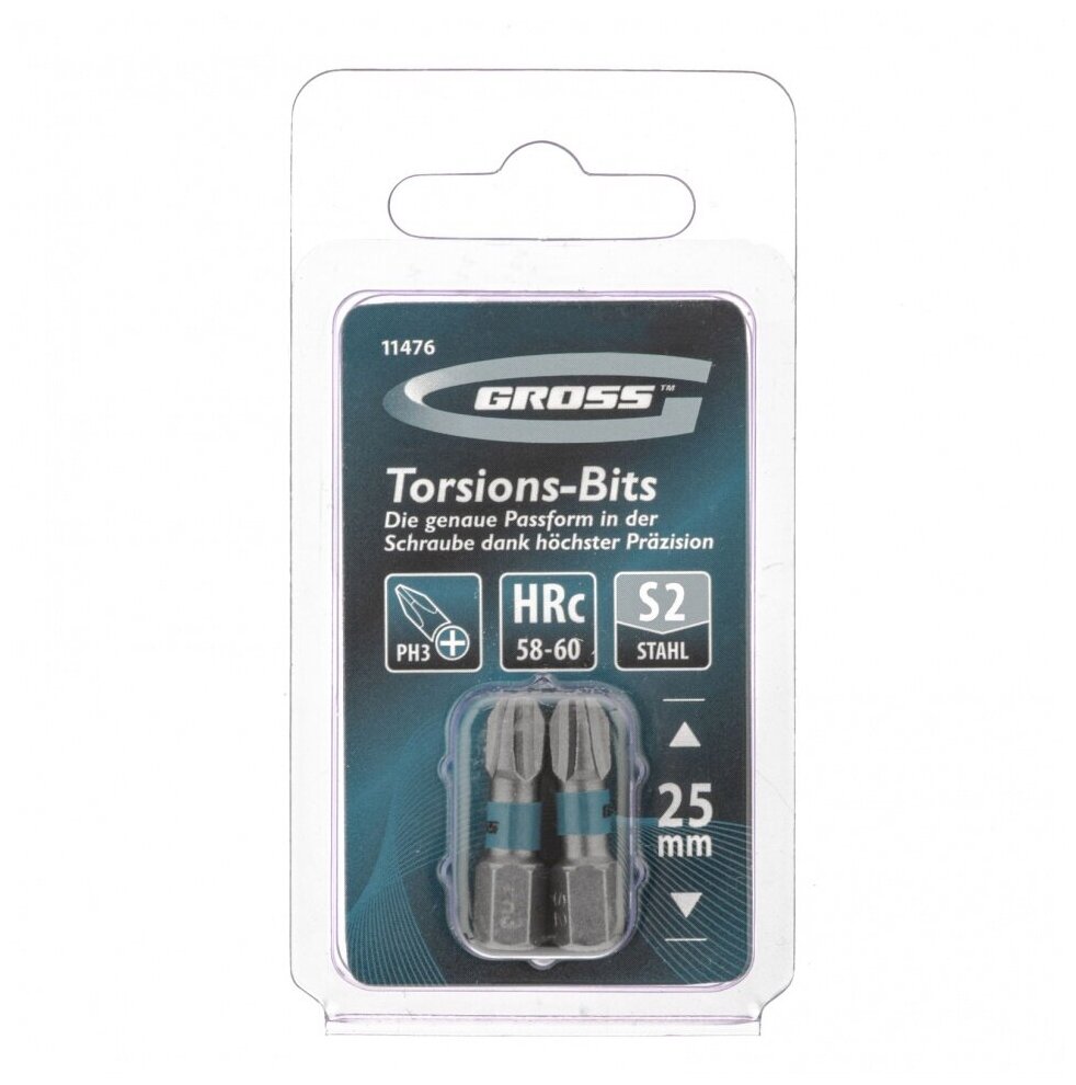 Купить GROSS Бита торсионная PH3 x 25 мм, для ударных шуруповертов, 2 шт. Gross