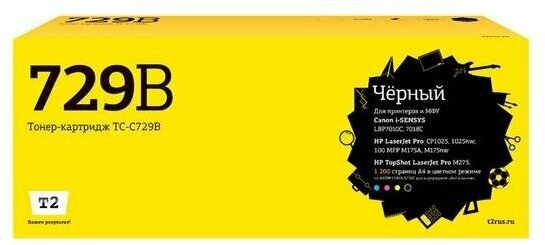T2 Cartridge 729 Картридж (Tc-C729B) Для Canon I-Sensys Lbp7010C/hp Lj Pro Cp1025 (1200 Стр.) Черный, С Чипом