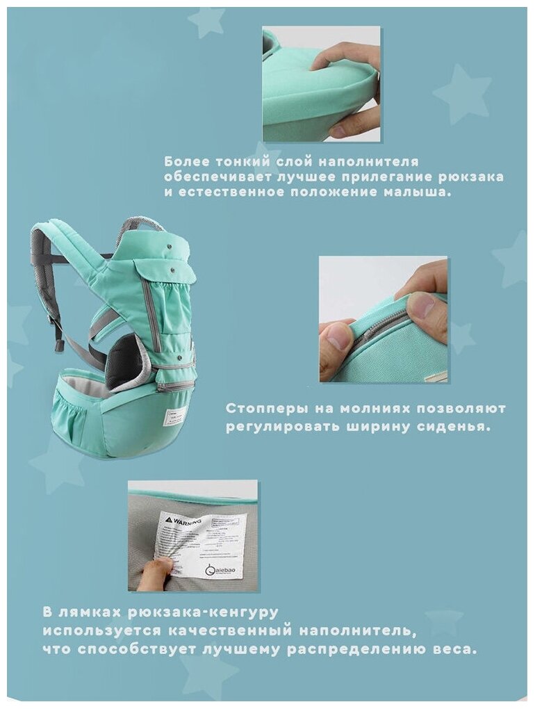 | Минусы: | Невозможно использовать только хипсит, он вместе с ребенком ( 10кг) перевешивает |