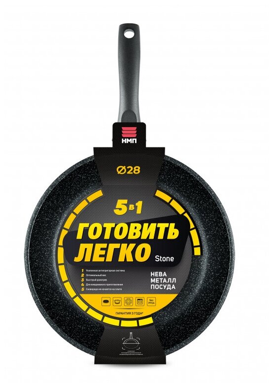 Сковорода НМП "Готовить легко" stone, литая, с антипригарным покрытием, 28см, темно-серый