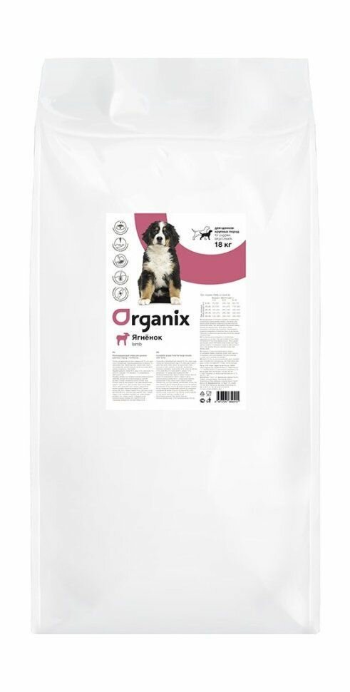 Сухой корм Organix для щенков крупных пород, с ягненком, 18 кг