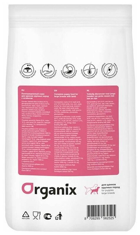 Organix сухой корм Для щенков крупных пород с ягненком (Puppies Large Breeds Lamb) | Puppies Large Breeds Lamb, 2,5 кг