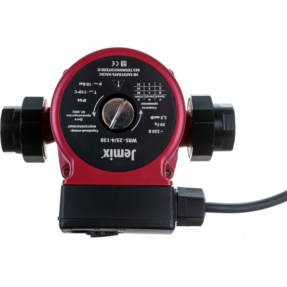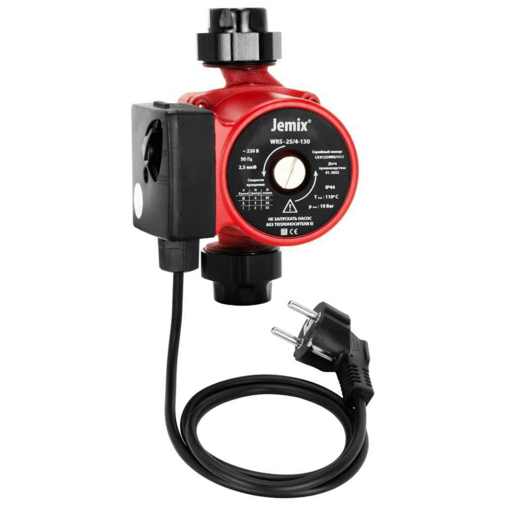 Насос циркуляционный JEMIX WRS-25/4-130 для отопления с кабелем 60 см с вилкой, гайки в комплекте