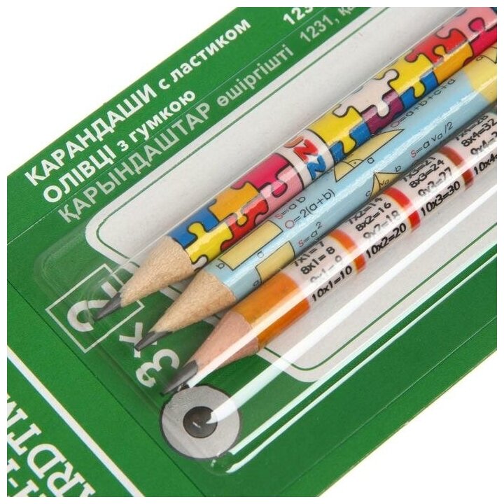 Набор карандашей чернографитных 3 штуки MIX 1231 HB, с ластиком, блистер