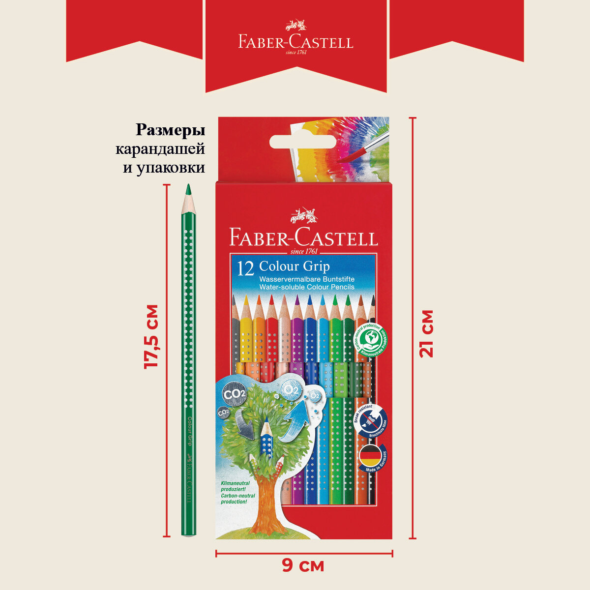 Карандаши акварельные 12 цветов. Faber-Castell GRIP