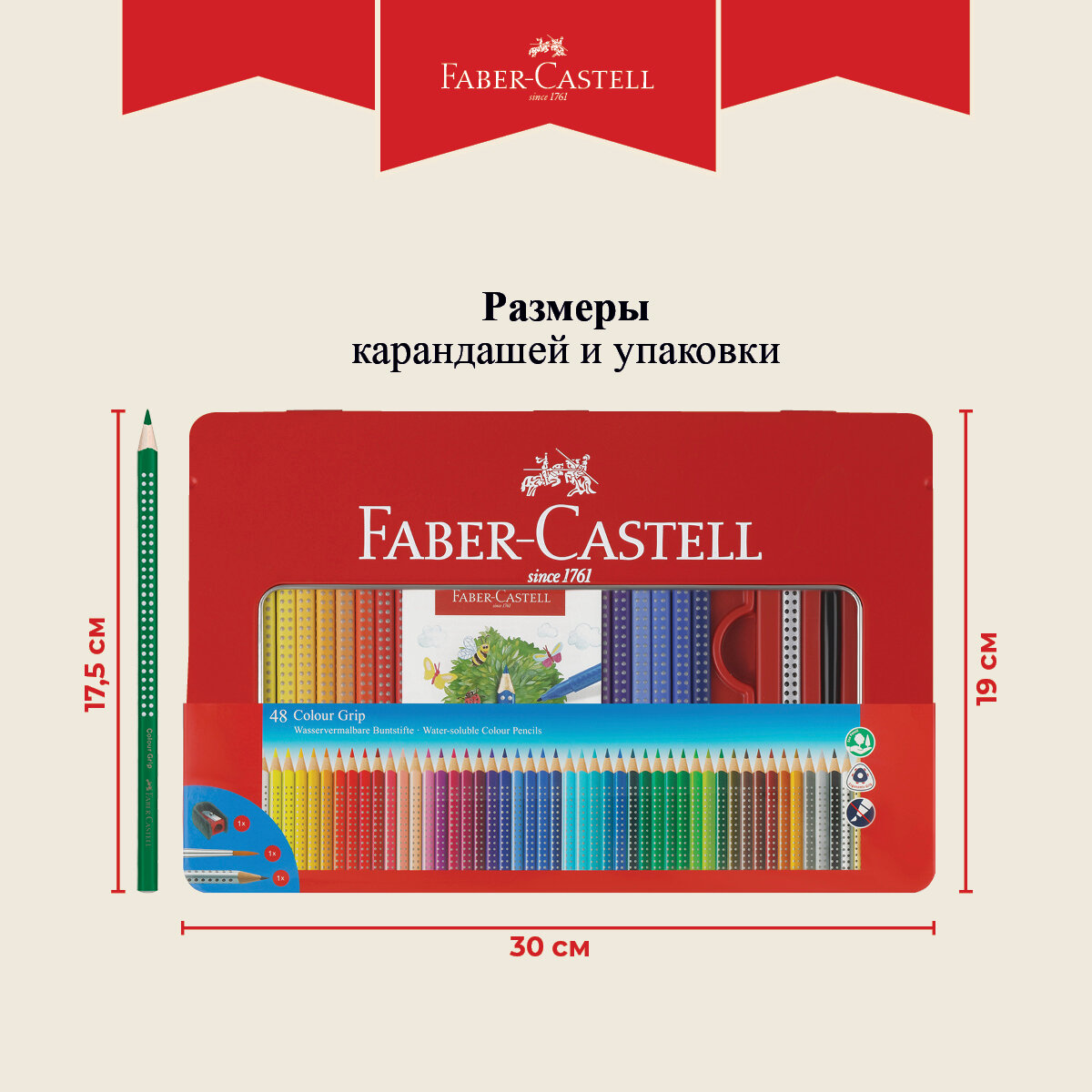 Карандаши цветные Faber-Castell "Grip", 48 цв.+3, с кистью, точилкой, трехгранные, заточенные интересное: