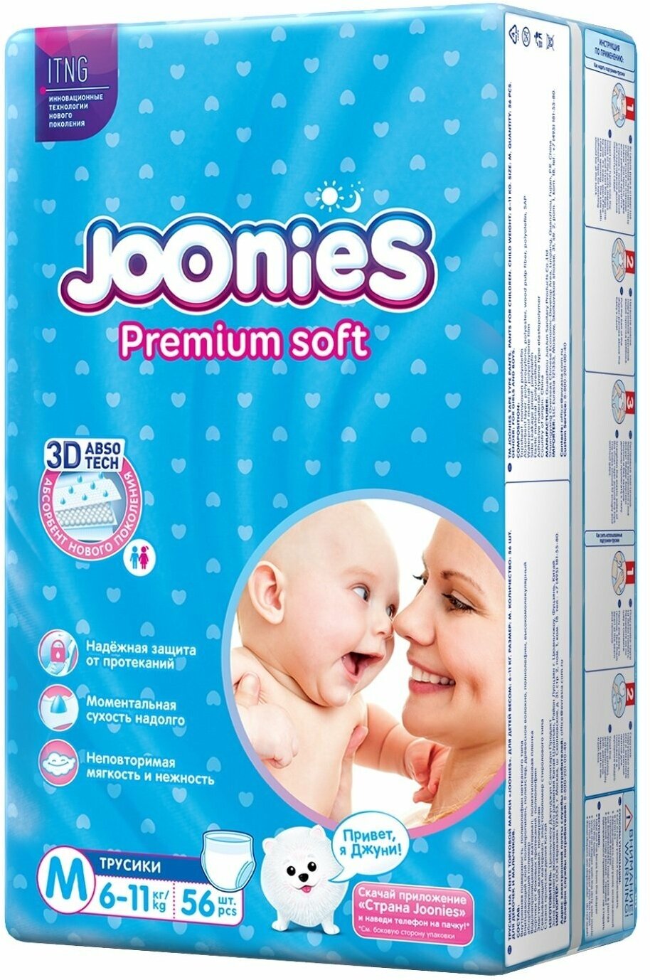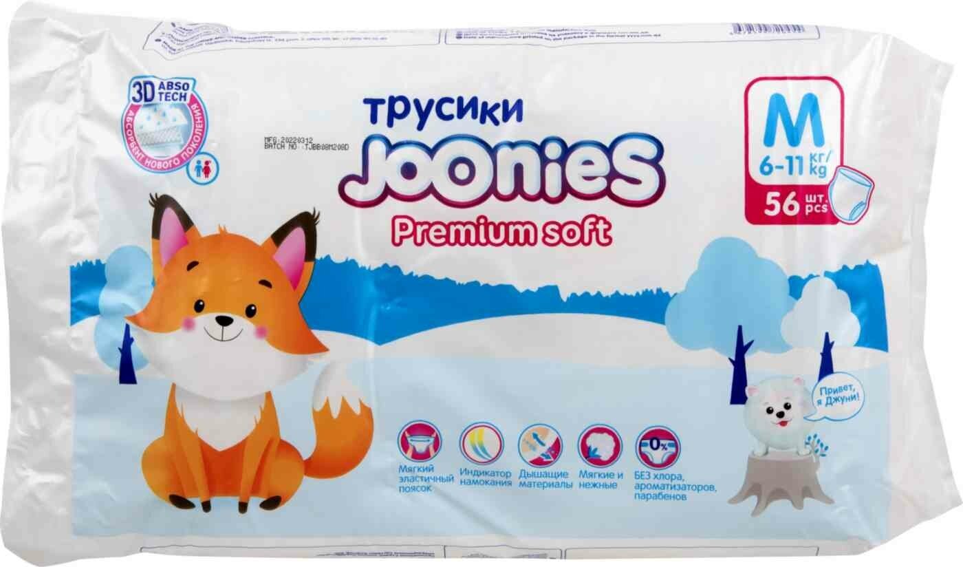 Подгузники-трусики JOONIES 953214 Premium Soft M (6-11 кг) 56 шт