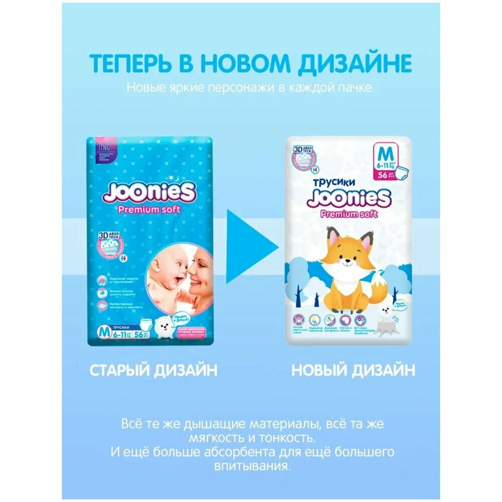 Подгузники-трусики JOONIES Premium Soft, размер M (6-11 кг), 56 шт.