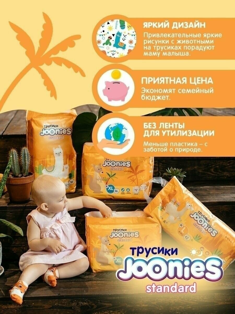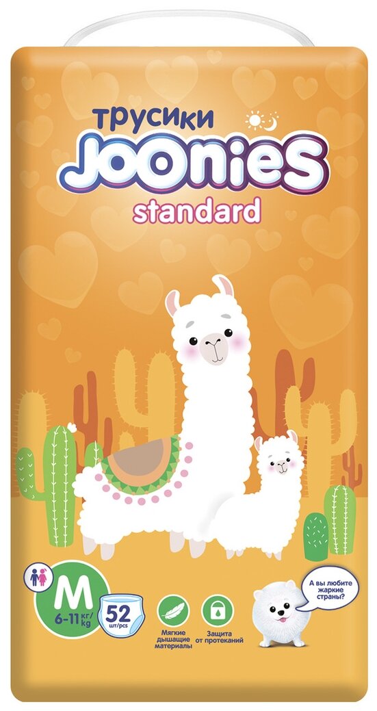 СохранитьПодгузники-трусики Joonies Standard, размер M (6-11 кг), 52 шт. интересное:
