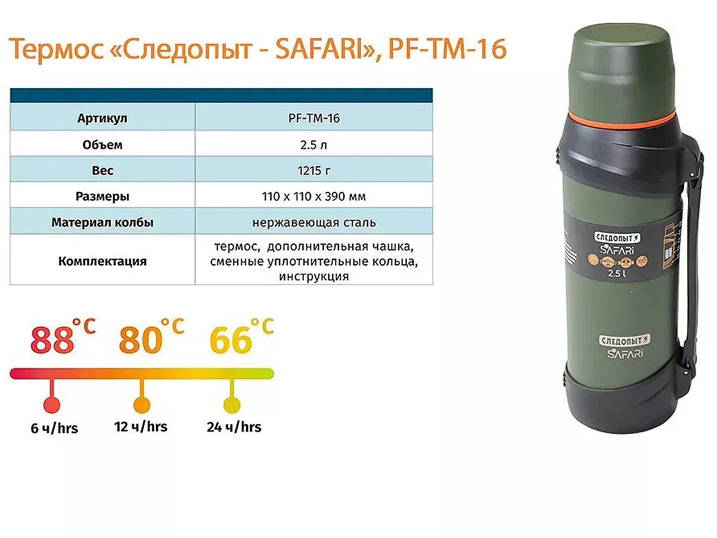 Ниже Вы можете прочитать отзывы на PF-TM-16 Термос "следопыт-safari", 2,5 л, ознакомится с подробными характеристиками, посмотреть интересные обзоры и фотографии на PF-TM-16 Термос "следопыт-safari", 2,5 л.