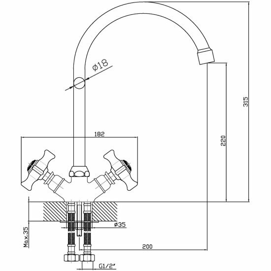 Смеситель для кухни Agger Retro-X A1700000 двухзахватный 326