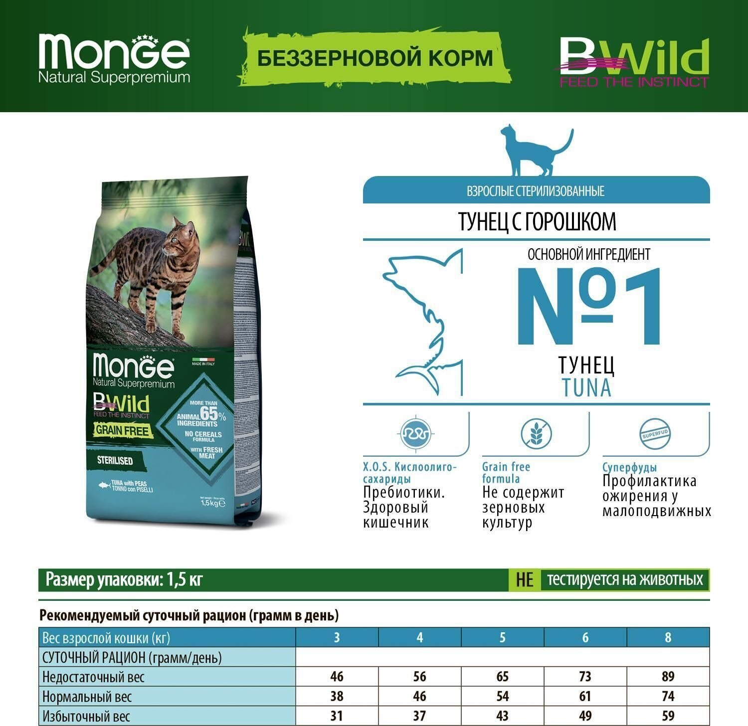 Monge Cat BWild GRAIN FREE беззерновой корм из тунца для стерилизованных кошек 1,5 кг интересное: