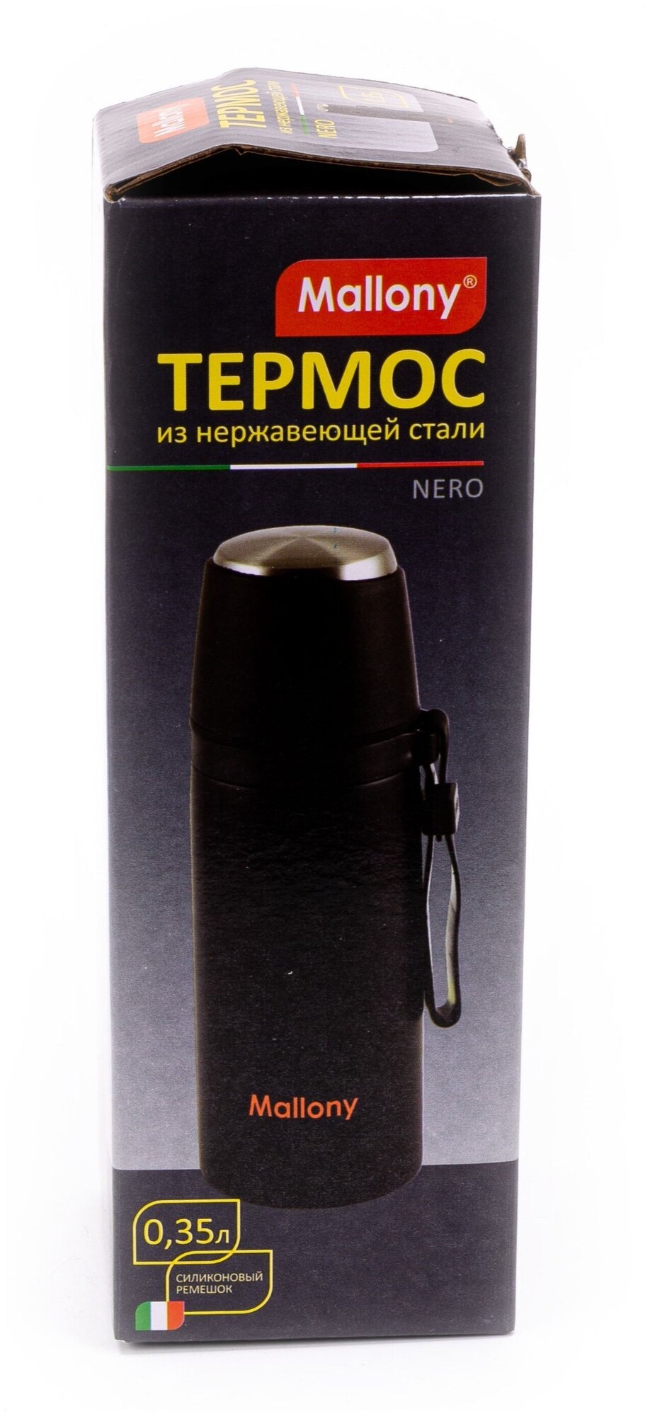 Термос 0,35л Mallony NERO спортивный с чашкой и сил/ремнем