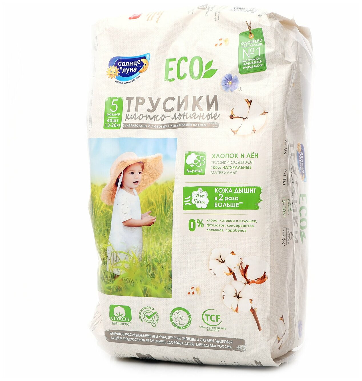 Трусики-подгузники Солнце и Луна "Eco", одноразовые, для детей, размер 5, XL, 13-20 кг, 40 шт (13282)