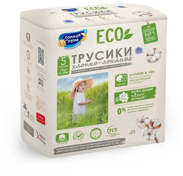 Трусики-подгузники Солнце и Луна "Eco", одноразовые, для детей, размер 5, XL, 13-20 кг, 40 шт (13282)