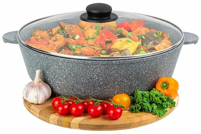 СохранитьЖаровня-сотейник 5,5 л 32 см Elan Gallery гармония вкуса Серый мрамор с крышкой толстостенная из литого алюминия с двухслойным антипригарным покрытием Идеальный подарок на Новый год, Рождество, День Рождения и 8 марта интересное: