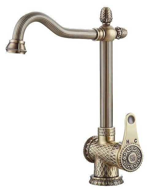 Смеситель для кухни ZorG A 423 K-BR, латунь бронзовый, ретро, с орнаментом, аэратор от брызг, поворотный