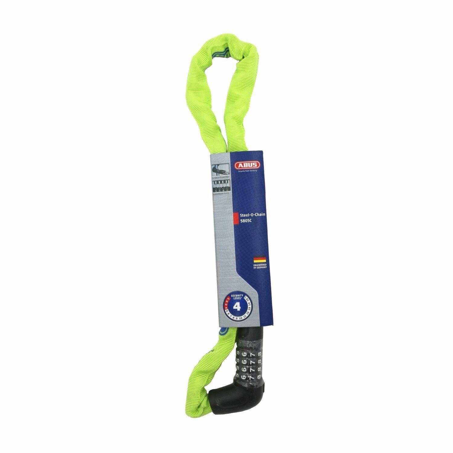 Замок 05-0072494 вело цепь 5мм, кодовый 4-х разр, Steel-O-Chain 5805C/75см класс защиты 4/15, 500гр, голубой ABUS