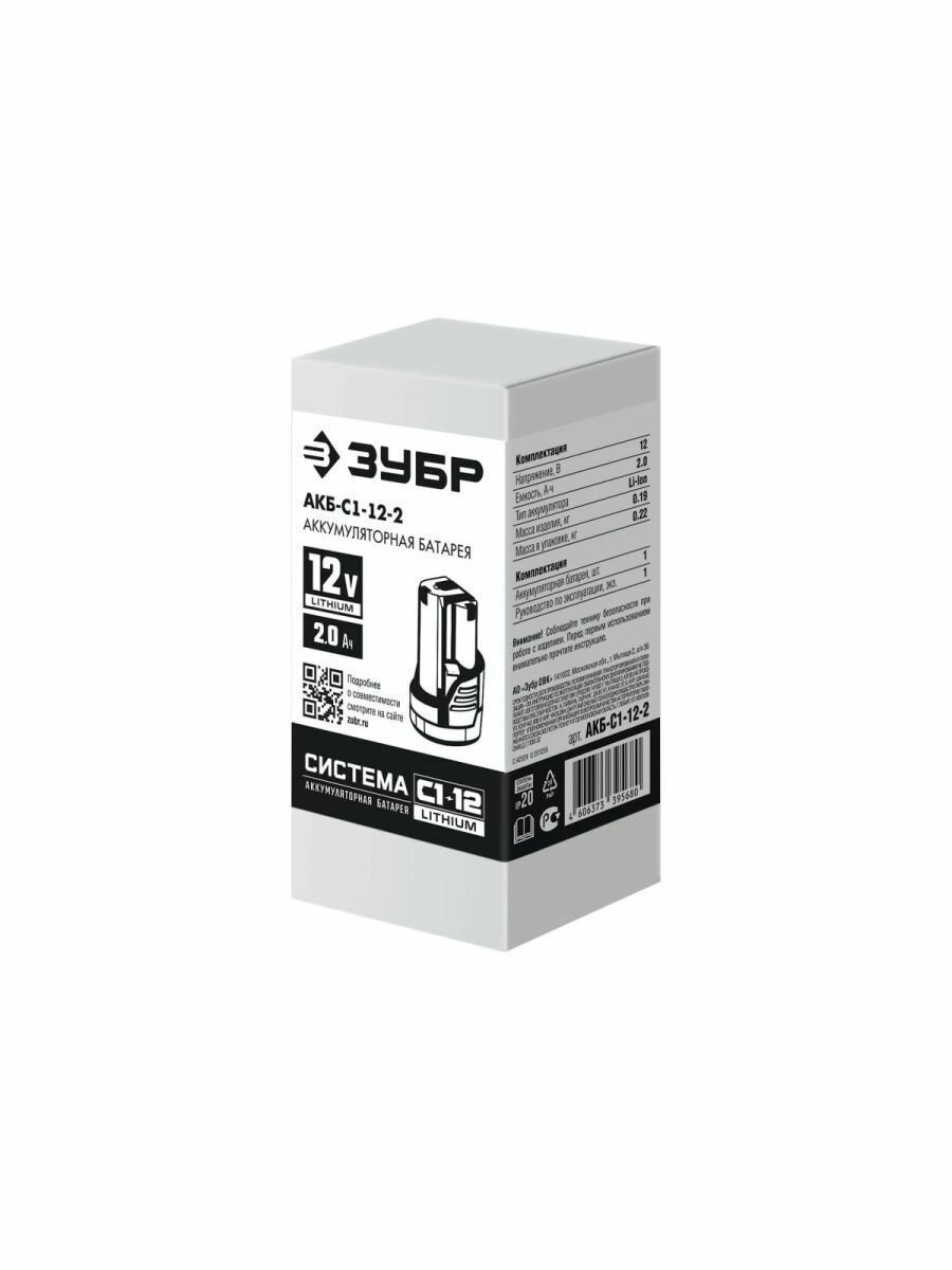 ЗУБР 12В, Li-Ion, 2Ач, тип С1, аккумуляторная батарея. АКБ-С1-12-2 ( АКБ-С1-12-2 )