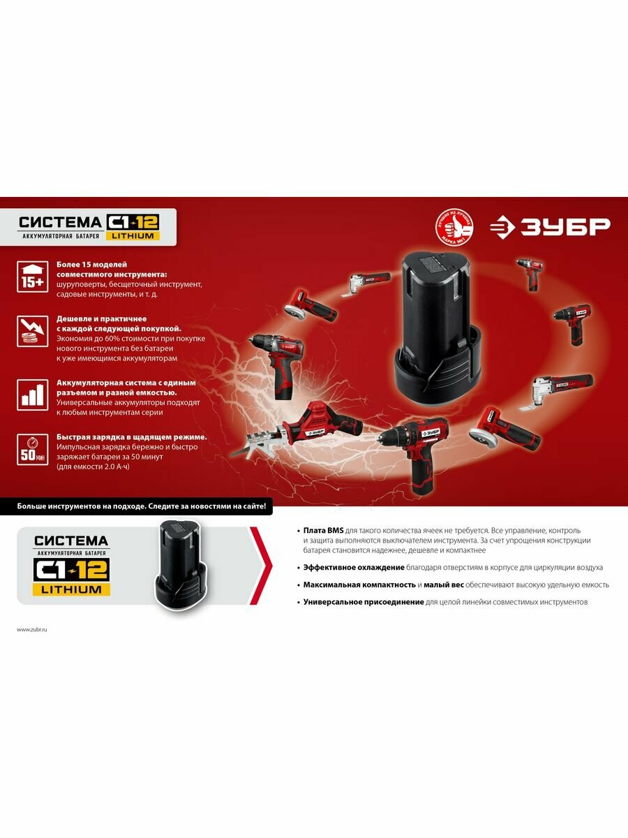СохранитьЗУБР 12В, Li-Ion, 2Ач, тип С1, аккумуляторная батарея. АКБ-С1-12-2 интересное:
