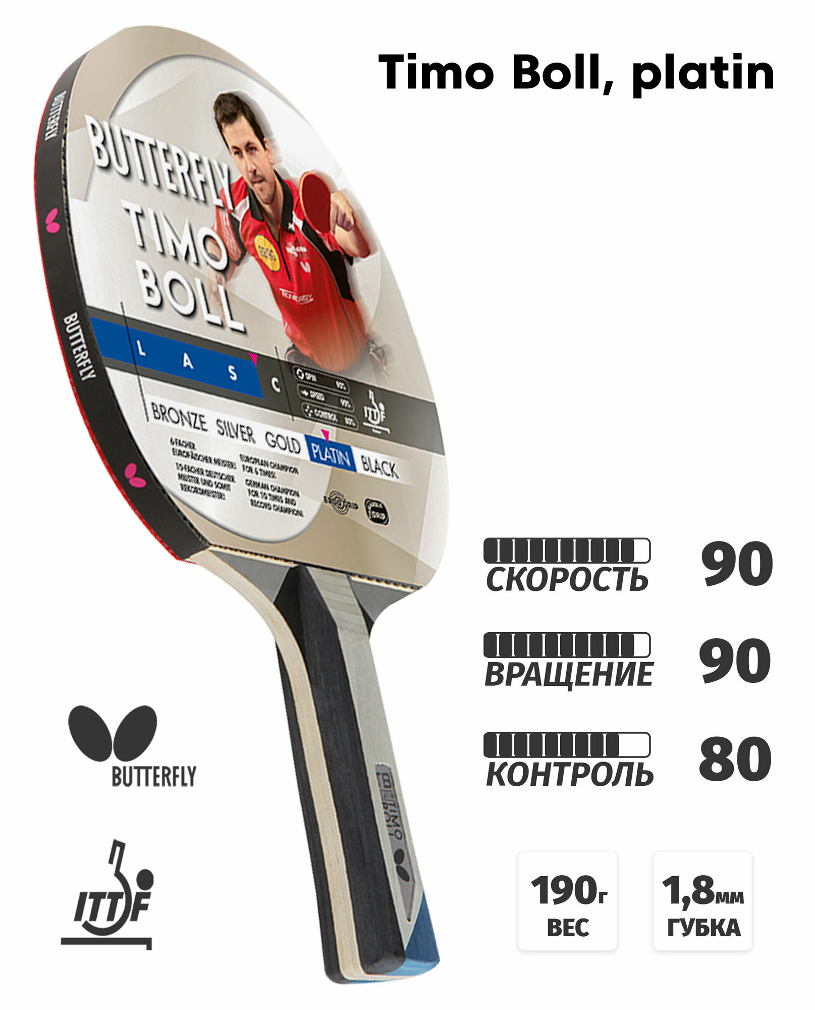 Ниже Вы можете прочитать отзывы на Ракетка Butterfly Timo Boll Platin, ознакомится с подробными характеристиками, посмотреть интересные обзоры и фотографии на Ракетка Butterfly Timo Boll Platin.