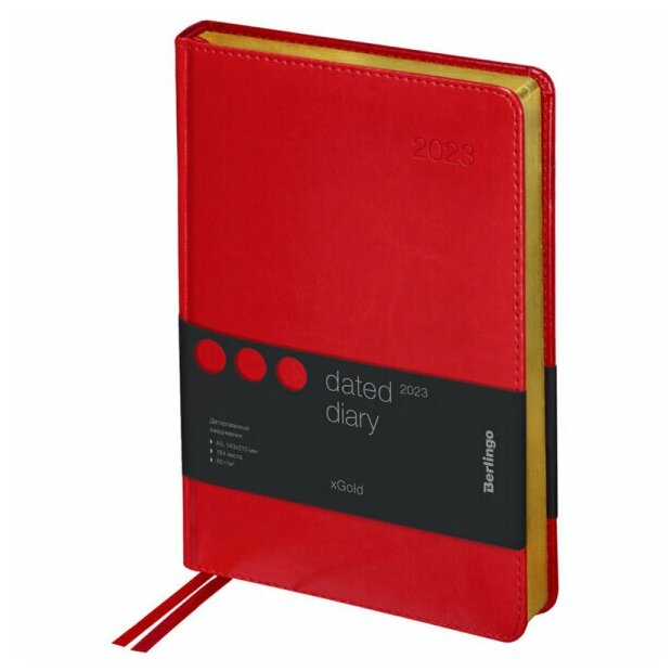 Ежедневник датированный Berlingo 2023 г, А5, 184 л, кожзам, xGold, золотой срез, красный (DD3_81506)