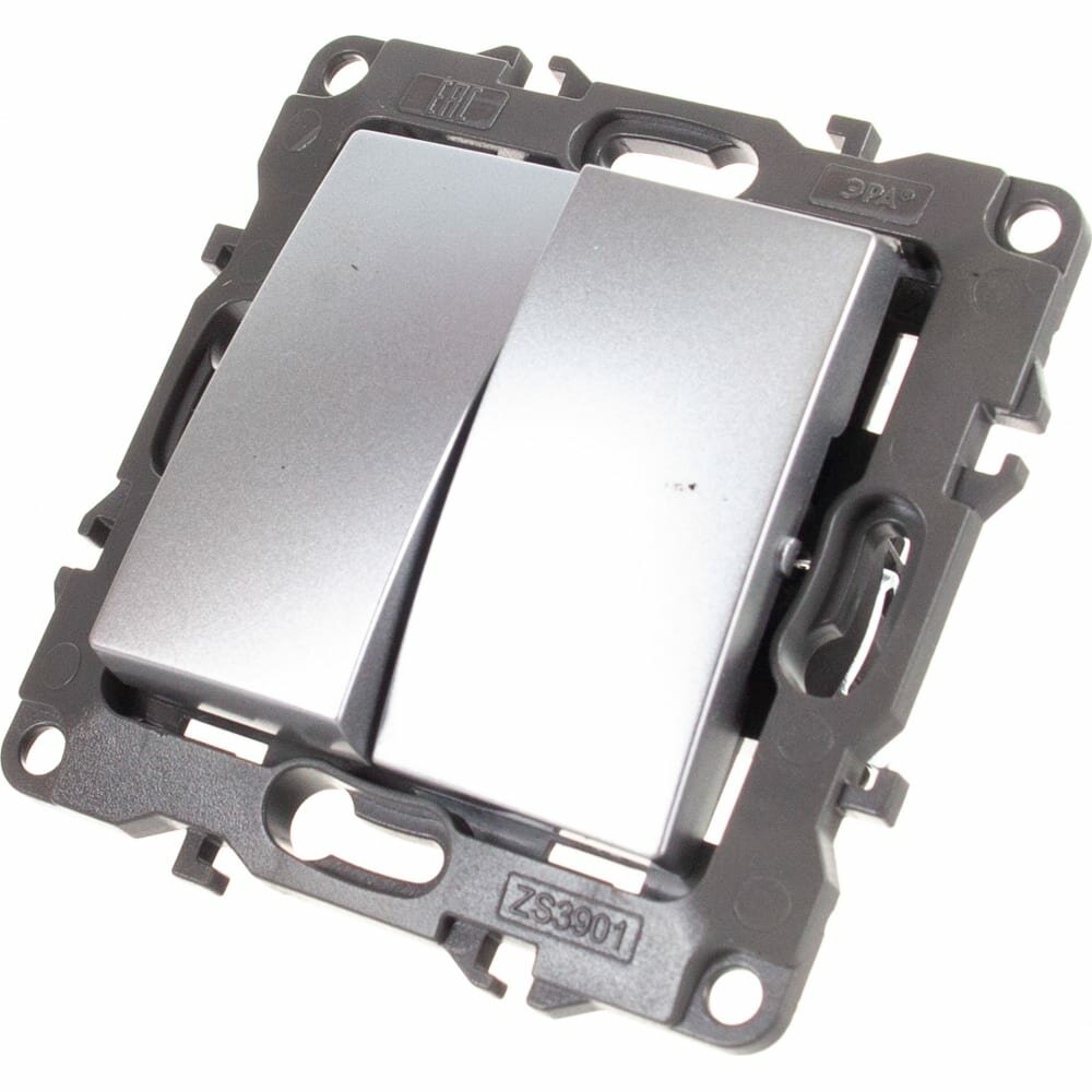 12-1004-05 ЭРА Выключатель двойной, 10АХ-250В, IP20, без м. лапок, Эра12, антрацит