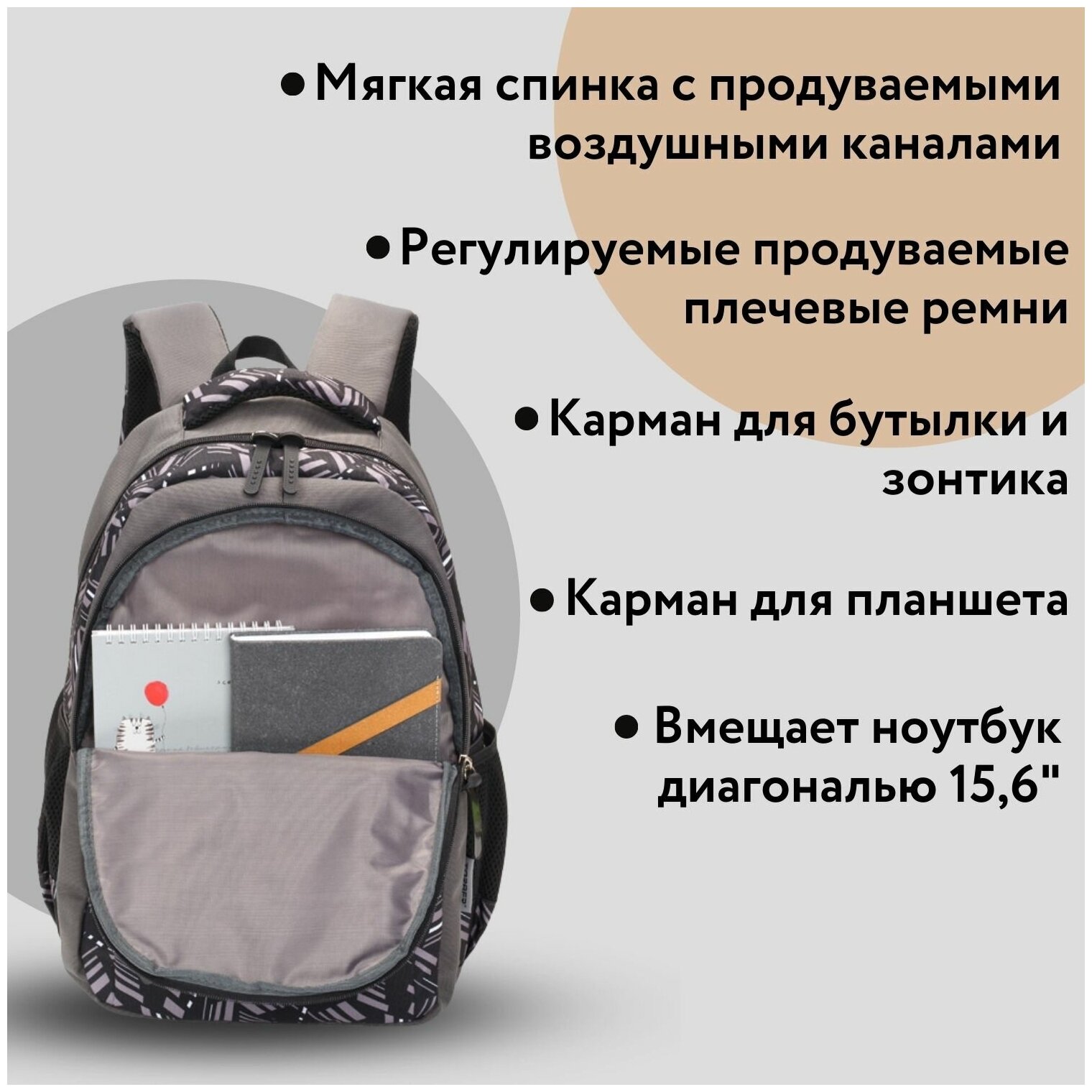 Рюкзак школьный Torber Class X серый с орнаментом 17л T2602-GRE