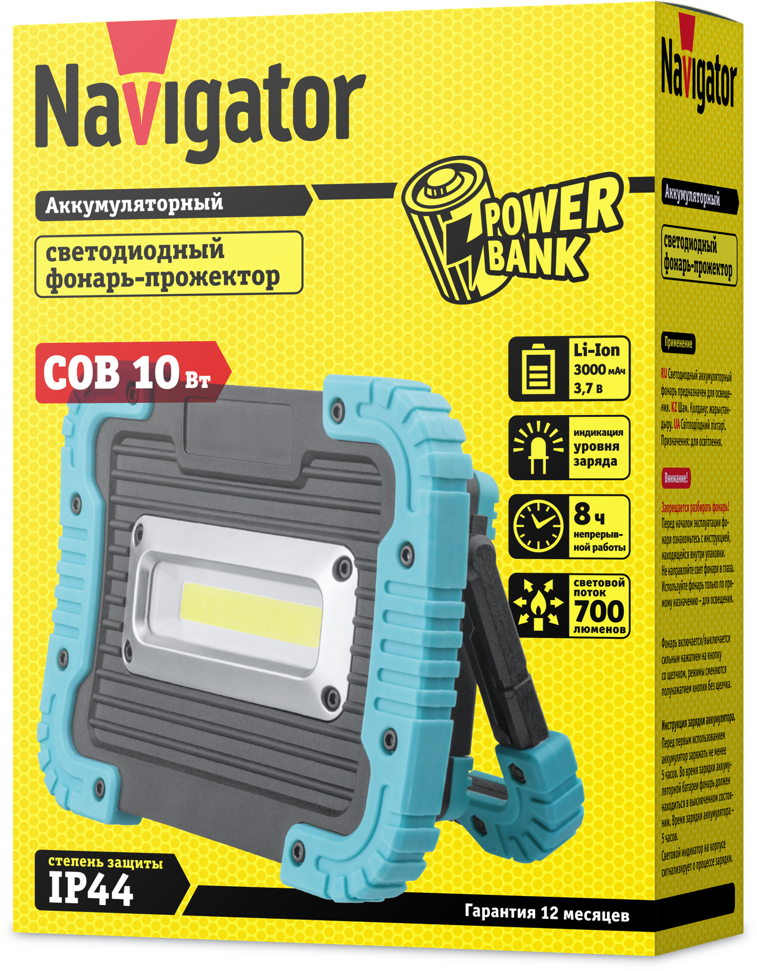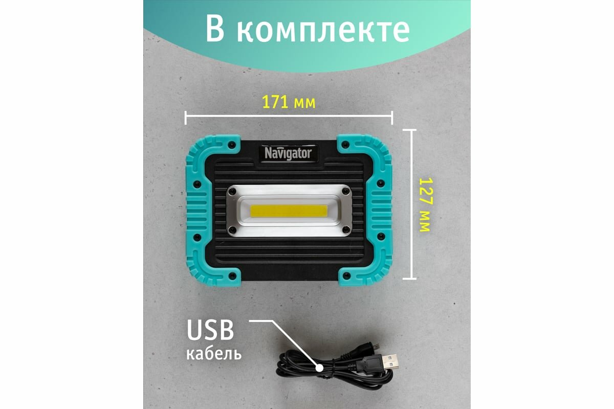 Фонарь прожектор Navigator NPT (14268) светодиодный 1 LED 10 Вт аккумуляторный Li-Ion 3000 мАч пластик 3 режима
