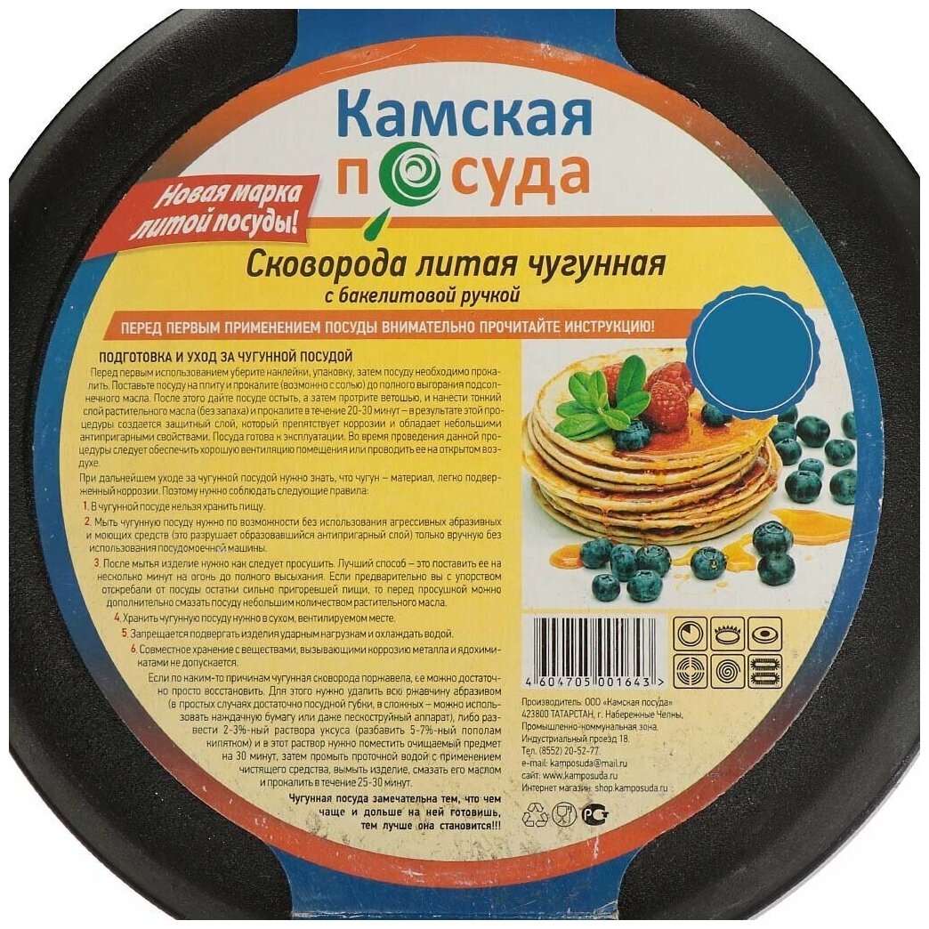 Сковорода чугун, 24 см, Камская посуда, ПЛЧ-1-24-40-01-6/б4040, индукция