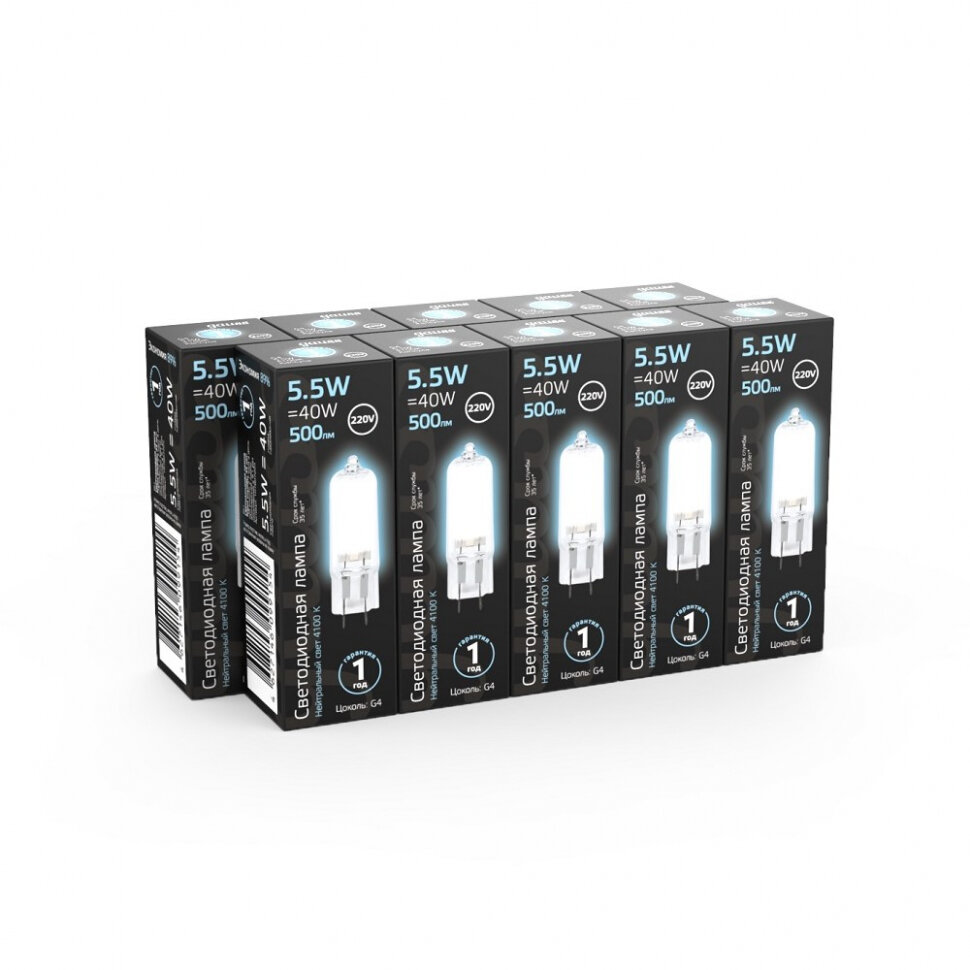 (10 шт)Лампа Gauss G4 AC220-240V 5.5W 500lm 4100K стекло LED
