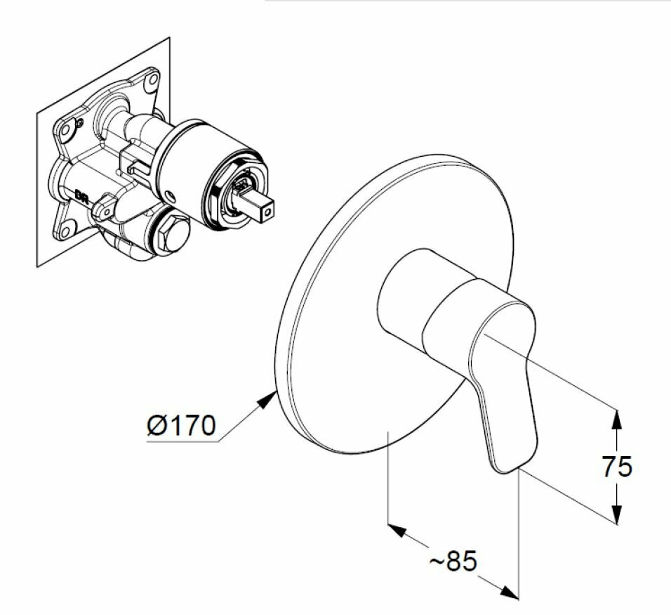 Встраиваемый смеситель KLUDI 376550565 PURE&EASY Смеситель для душа, внешняя монтажная часть (для 88011), хром